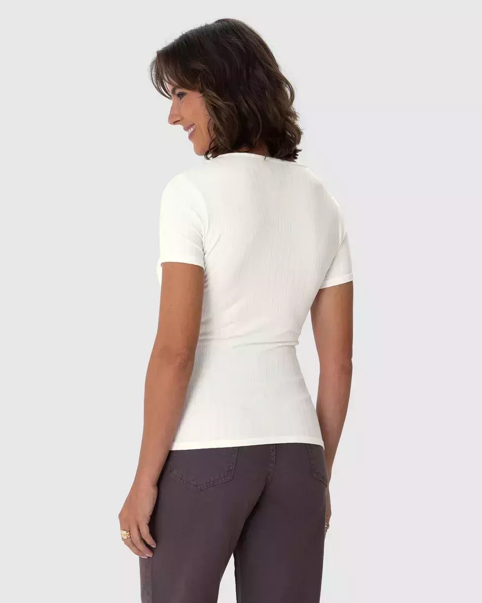 Seja para um look casual com jeans e tênis ou para uma produção mais sofisticada com calça de alfaiataria e salto bloco, essa blusa básica é a escolha certa. Sua textura canelada traz um charme sutil que faz toda a diferença.