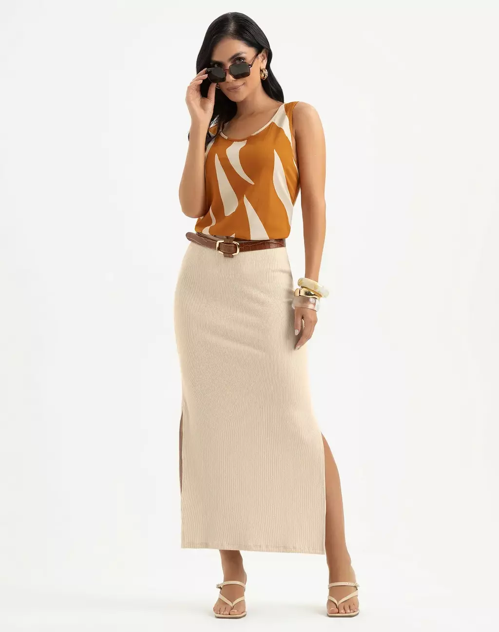 A estampa rotativa exclusiva traz um charme especial e garante originalidade em cada modelo. Versátil, vai do look casual com jeans e rasteirinhas ao visual elegante com calça de alfaiataria e acessórios marcantes.